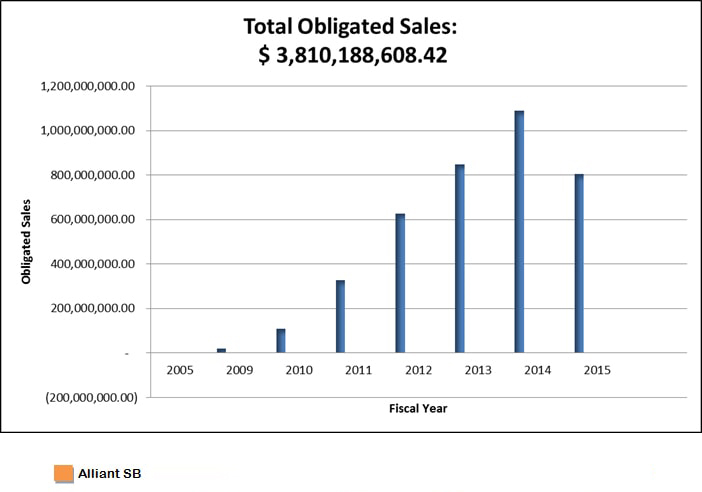 The Table below shows the amount of Small-Business dollars spent on Alliant, with which agency, as well as the number of task orders issued as of July 1, 2015. $3.8 billion has been spent to date with small businesses on the Alliant SB contract.